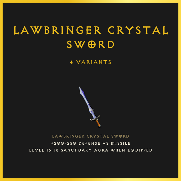 +200-249 Defense vs. Missile,Level 16-17 Sanctuary Aura when equipped